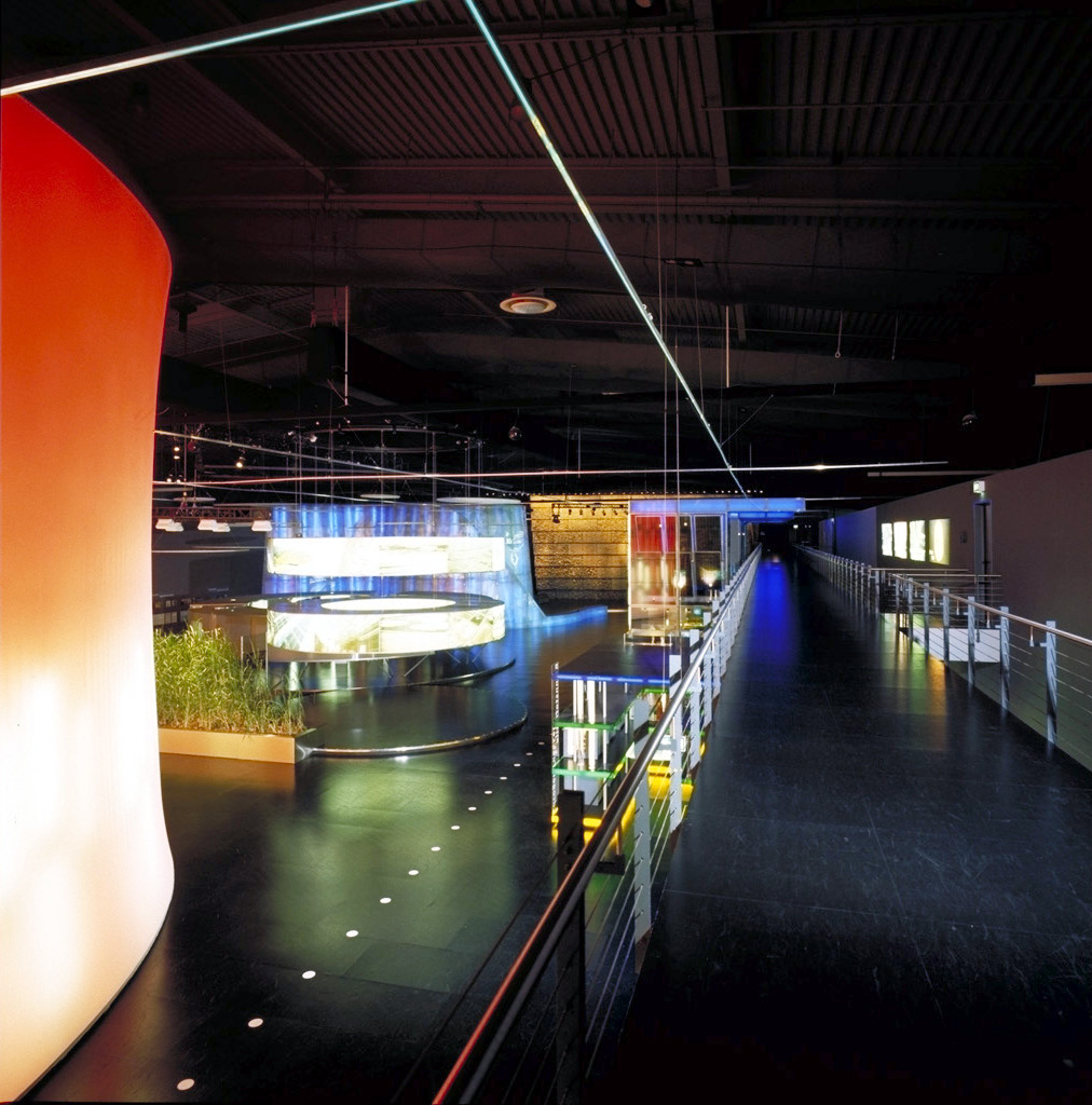 Von der EXPO-Gesellschaft Hannover wurden wir beauftragt die Konzeption und Szenographie für das Thema “Energie” im Themenpark der EXPO 2000 in Hannover zu entwickeln. Unsere Aufgabe war es, ein Gesamtenvironment zu schaffen, in dem komplizierte Sachverhalte publikumswirksam inszeniert sind und das Thema Energie zum Erlebnis machen. Die zahlreichen Facetten der Energie wurden zu einem thematischen Gesamterlebnis arrangiert. In ein architektonisch klar gegliedertes Ensemble verschiedenartiger Körper wurden die unterschiedlichen Themen integriert. Durch eine neue, multimediale Szenographie für thematische Inhalte und einem spannungsvollen Wechsel von Interaktion und sensueller Wahrnehmung konnten auch technisch anspruchsvolle Entwicklungen der Energiewirtschaft interessant dargeboten werden. Wir setzten neueste Multimediaentwicklungen und -technologien ein, konzipierten mit den Medienmachern zusammen dafür geeignete Filme und Computerspiele und entwickelten verschiedene interaktive Erlebnisstationen.