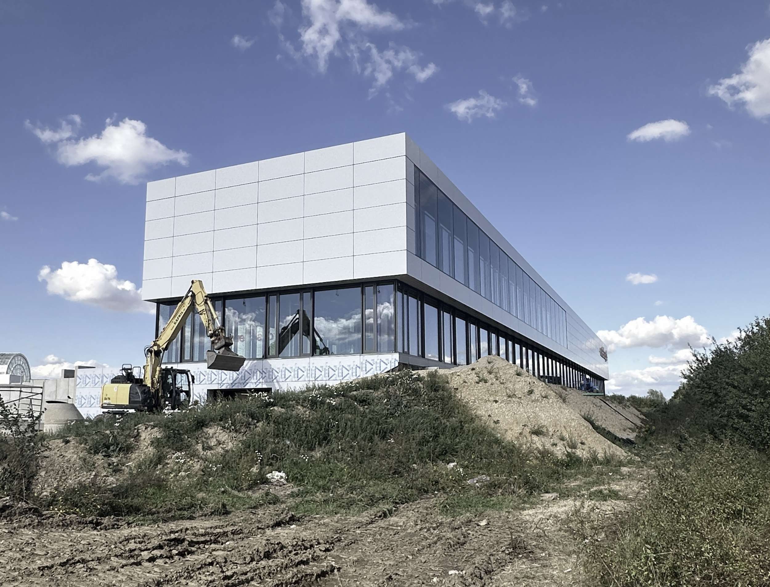 Die Bauarbeiten in Schkeuditz bei Leipzig kommen gut voran. Derzeit laufen die Fassadenarbeiten sowie der Innenausbau auf Hochtouren. Die Fertigstellung der neuen Niederlassung der Firma Weishaupt ist für dieses Jahr vorgesehen.